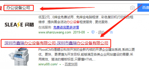 我們公司與深圳市鑫瑞辦公設(shè)備有限公司合作中,對(duì)這個(gè)公司所經(jīng)營(yíng)的辦公用品這個(gè)行業(yè)提供了百度快照排名,與改公司的合作,更多的客戶讓我們公司為其提供百度快照排名,通過(guò)每一次合作,我們公司不斷完善自己,同時(shí)希望合作伙伴在經(jīng)營(yíng)的路上越來(lái)越好。