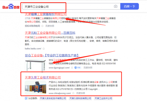 天津久*工業技術有限公司百度關鍵詞排名專注一站式品牌營銷整合推廣