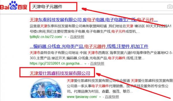 天津愛仕凱睿科技發(fā)展有限公司選用我司企業(yè)電子元器件的網(wǎng)站優(yōu)化產(chǎn)品,其SEO關(guān)鍵詞有電子元器件。主要針對百度、搜狗、360等搜索引擎進(jìn)行快速排名優(yōu)化服務(wù),關(guān)鍵詞排名必要條件是在搜索結(jié)果前3頁,周期15天內(nèi)可優(yōu)化到搜索引擎首頁。天津愛仕凱睿科技發(fā)展有限公司成立于2016年,是經(jīng)天津市市場監(jiān)督管理局審核的有資質(zhì)的公司,其統(tǒng)一社會信用代碼:91120106MA05K6XU2K。公司地址:天津市紅橋區(qū)大豐路水游城商務(wù)區(qū)安順大廈四號樓第5層510號房間。