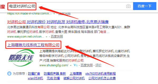 上海曙騰無線系統工程有限公司選用我司企業美容行業的網站優化產品,其SEO關鍵詞有專業從事無線對講系統設備研發,生產,代理,銷售和服務的對講機公司。鎖定海外排名,覆蓋谷歌,雅虎,必應等海外主流搜索引擎,搶占海外市場, 網站打開速度快,用戶體驗好,風格多樣化,用戶互動性高,增強用戶黏著度。上海曙騰無線系統工程有限公司成立于2013年,是經寶山區市場監督管理局審核的有資質的公司,其統一社會信用代碼:91310113069314585G。公司地址:上海市寶山區金石路1688號C-739。