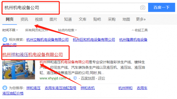 我們公司與杭州祥和液壓機電設備有限公司合作中,對這個公司所經營的機電設備這個行業提供了快速排名,與該公司的合作,更多的客戶讓我們公司為其提供快速排名,通過每一次合作,我們公司不斷完善自己,同時希望合作伙伴在經營的路上越來越好。