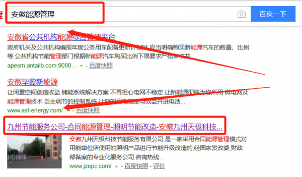 我們公司與安徽九州天極科技節(jié)能服務有限公司合作中,對這個公司所經(jīng)營的能源管理這個行業(yè)提供了SEO推廣,與該公司的合作,更多的客戶讓我們公司為其提供SEO推廣,通過每一次合作,我們公司不斷完善自己,同時希望合作伙伴在經(jīng)營的路上越來越好。
