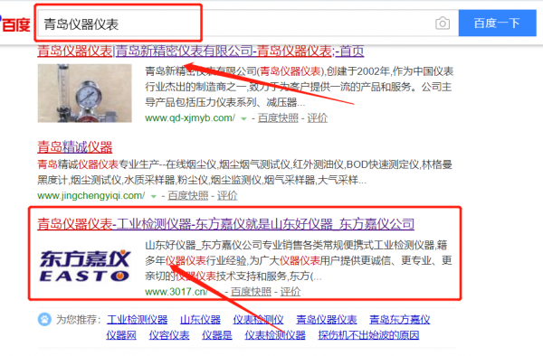 我們公司與青島東方嘉儀電子科技有限公司合作中,對這個公司所經營的儀器儀表這個行業提供了快速排名,與該公司的合作,更多的客戶讓我們公司為其提供關鍵詞搜索排名,通過每一次合作,我們公司不斷完善自己,同時希望合作伙伴在經營的路上越來越好。